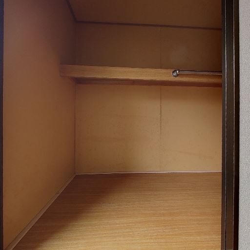 収納スペースあり(押入/クローゼット)(確度82%):引き戸の中に棚とハンガーパイプ付きの収納が確認できる。