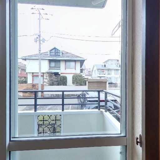 採光とバルコニー(確度86%):大きめの掃き出し窓の外にバルコニーがあり、外光がしっかり入っている。