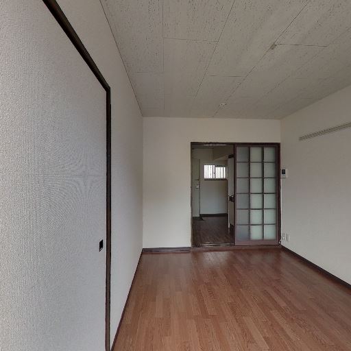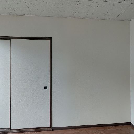 収納スペースあり(確度70%):居室の右壁面に引き戸タイプの収納が見える。