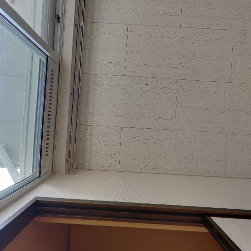 大きな掃き出し窓とバルコニー(確度88%):壁一面の大きな窓の先に小さなバルコニーがあり、外に面している。採光と換気が期待できる。