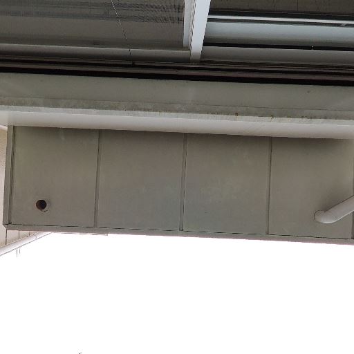 天井軒裏の汚れ(確度71%):バルコニー天井に黒ずみや汚れが見える。