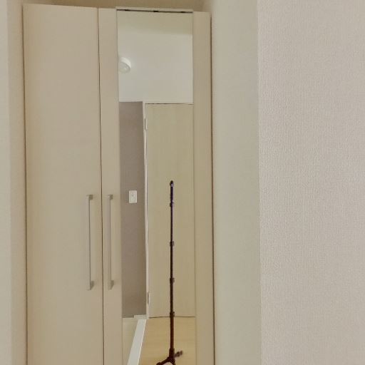 • 玄関まわりの収納と姿見(確度80%):玄関付近に縦長の鏡付き収納があり、靴収納と身だしなみ確認ができる。
