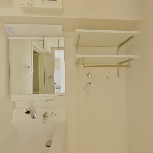• 浴室内収納(確度71%):ミラー横に小物棚が2段あり、シャンプーなどを置ける。