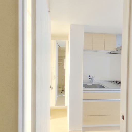 • 奥の居室への採光(確度73%):キッチン奥に大きめの開口部があり、奥の部屋からの自然光が廊下まで届いている。