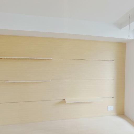 • アクセント壁と可動棚(確度82%):木目のアクセントウォールにスリットと棚板が設置されている。