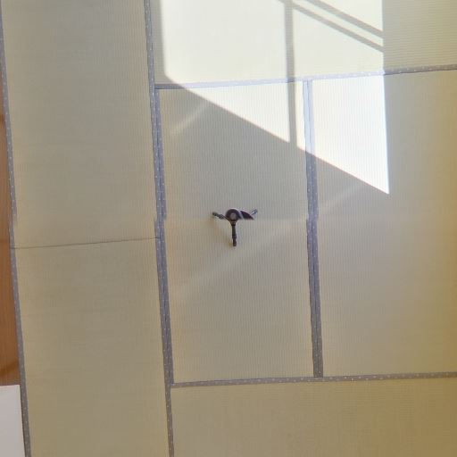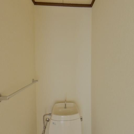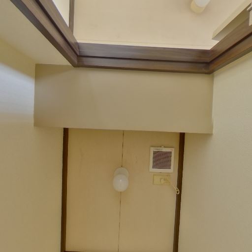 天井に照明器具なし(確度64%):天井中央に引っ掛けシーリングは見当たらず、プルスイッチと取付金具のようなものが見える。照明の設置が必要そう。