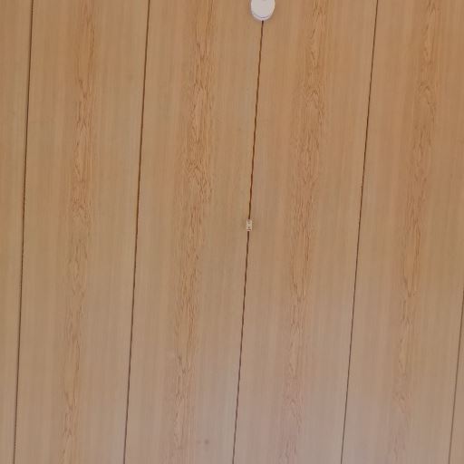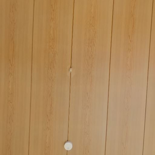 天井・照明(確度77%):木目調の天井で中央付近に引掛シーリングがある。照明器具は未設置。天井材の継ぎ目はあるが劣化は目立たない。