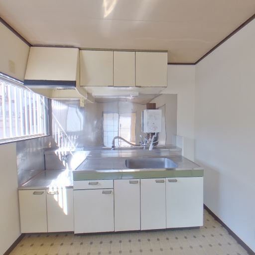 キッチン設備はシンプルで収納多め(確度86%):吊戸・シンク下に複数の収納があり、作業台も確保されている。ステンレス天板で掃除しやすそう。