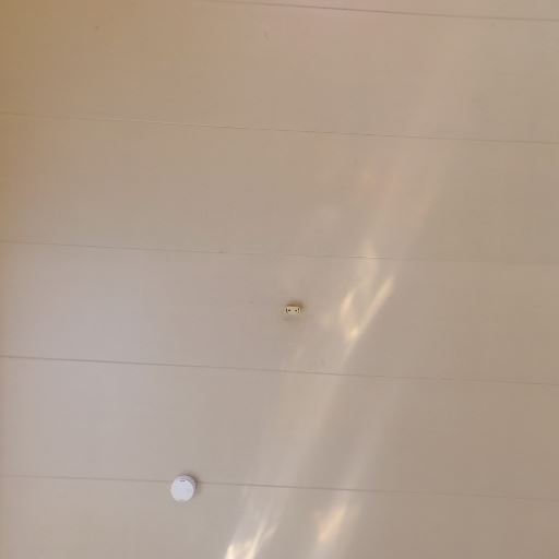 火災報知器と照明ソケットあり(確度87%):天井に火災報知器と照明用の引掛シーリングが確認できる。