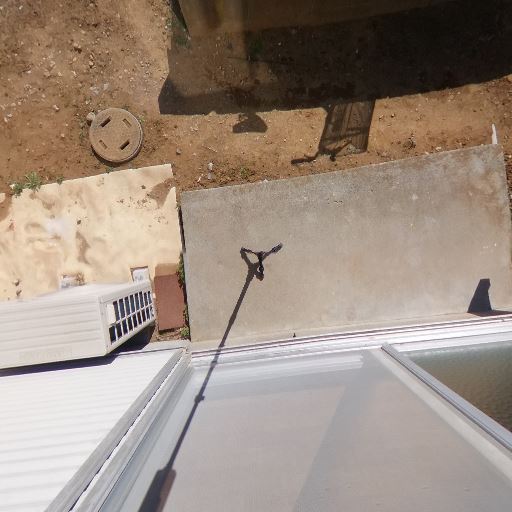 屋外の専用スペース(小庭・土部分)(確度74%):窓の外にコンクリート土間と土のスペースがあり、小さな庭のように使えそう。