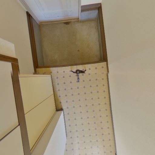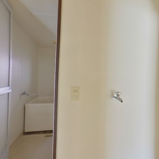 洗濯機用水栓・排水口(確度88%):床中央に排水口と給水栓があり洗濯機置場が明確。