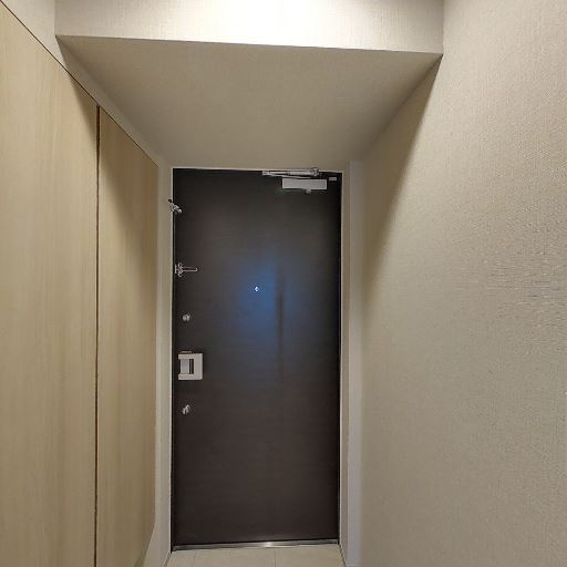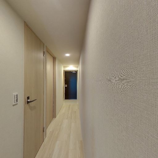 • 廊下の幅感(確度64%):片側がフラットな壁、反対側に扉が並ぶ細長い廊下で、幅はやや狭めに見える。大きな家具の搬入時は配慮が必要。