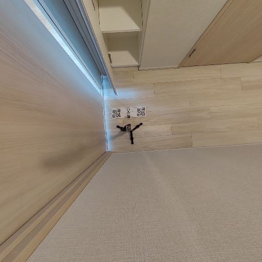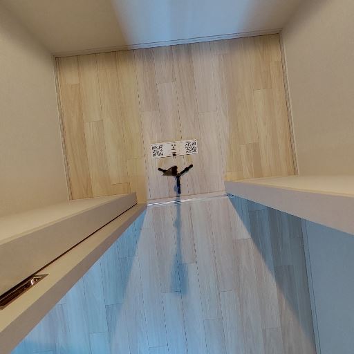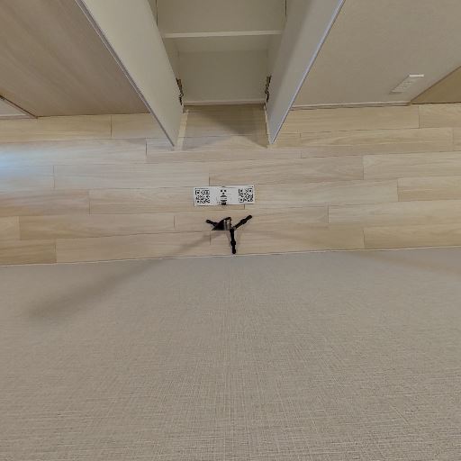 • 床コンセント/配線口の存在(確度77%):床面中央付近に2口の床コンセントと配線用の口が見える。廊下や収納周りでの電源確保が可能。