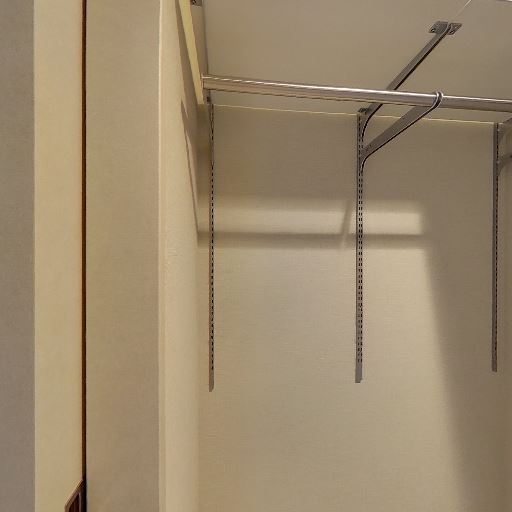 • 照明・天井設備(確度73%):天井に丸型照明と感知器(もしくは火災報知機)が見える。クローゼット内も十分に明るい。