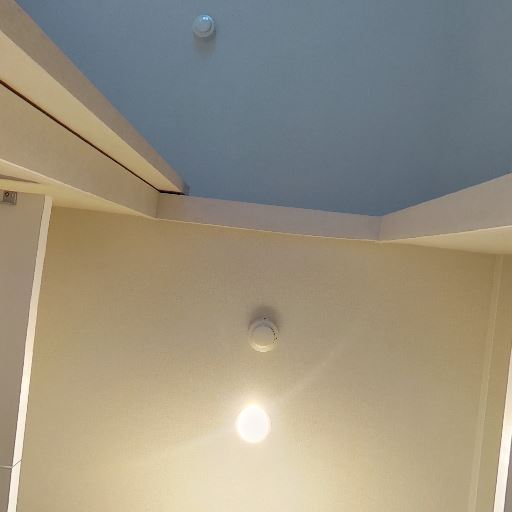 • 照明と換気設備(確度78%):天井にダウンライト複数と換気口、火災報知器がある。明るさと換気は十分そう。