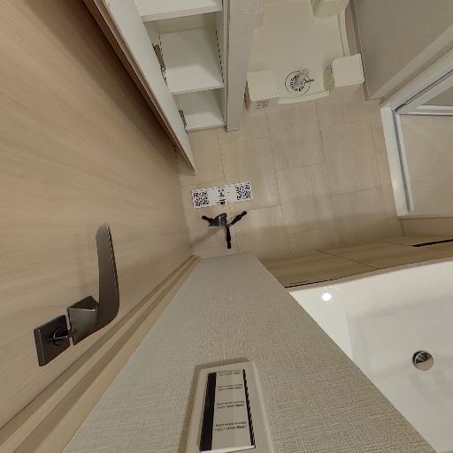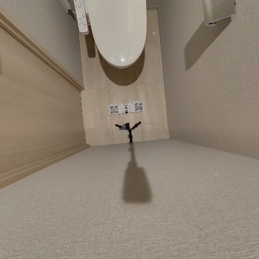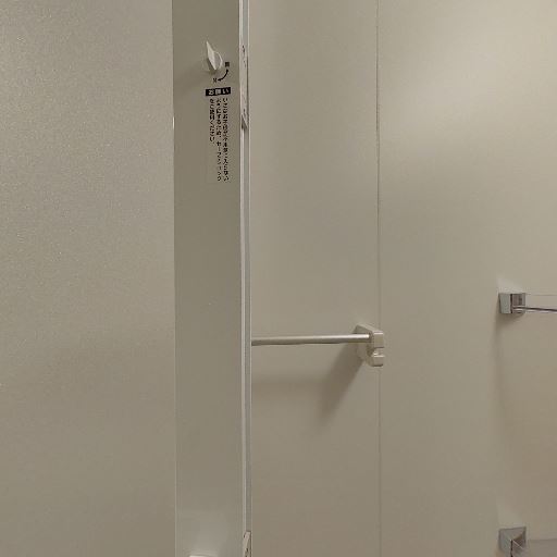 • タオルバー・ペーパーホルダーの配置(確度70%):右壁にタオルバー、前方右側にペーパーホルダーが確認できる。