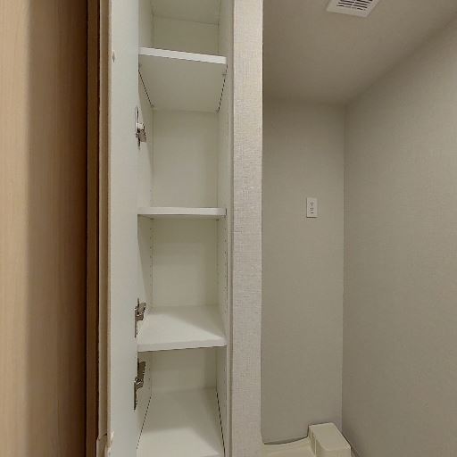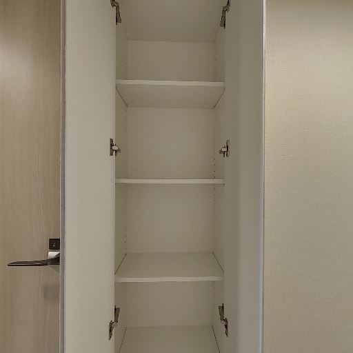 • リネン庫(可動棚)(確度83%):縦長の収納に可動棚が複数あり、タオルや洗剤のストックを整理しやすい。