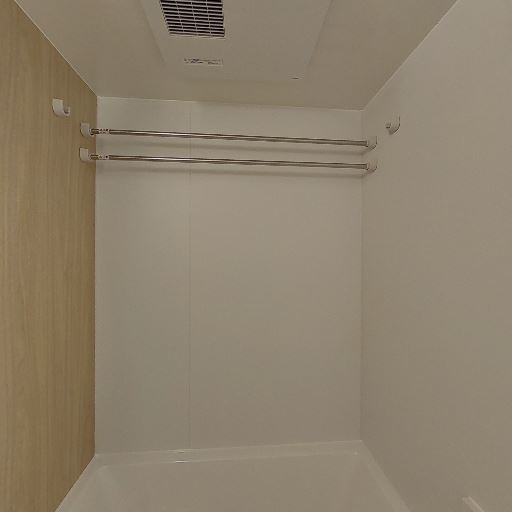 • 収納/物干しバー(確度82%):壁面に2本のバーとフックが設置されており、タオルや浴室乾燥時の物干しに使えそう。