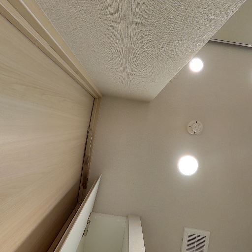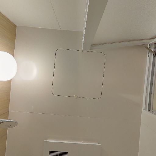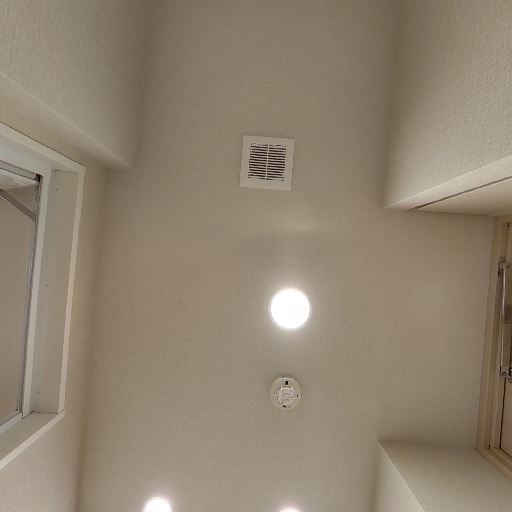 • 換気設備と照明の位置(確度80%):天井に換気口とダウンライトが設置されている。窓は見当たらない。