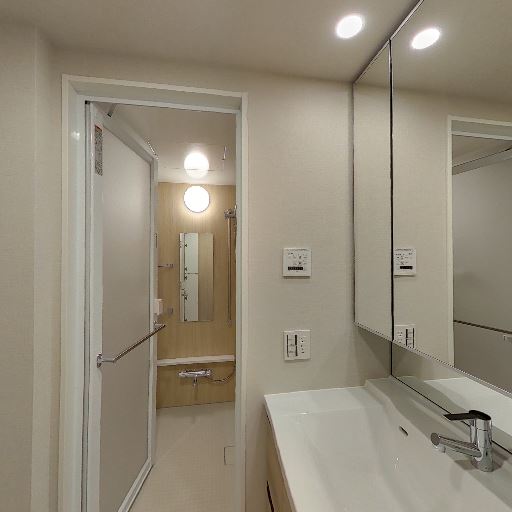 • 浴室が近接(確度78%):洗面室から直接つながる浴室入口が見える。段差も小さく動線が良い。