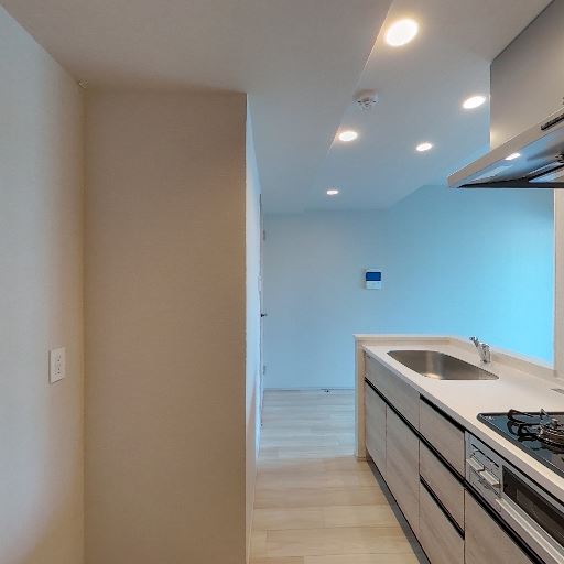 • 照明計画が充実(確度80%):天井に複数のダウンライトがあり、キッチン上も手元灯で明るい。