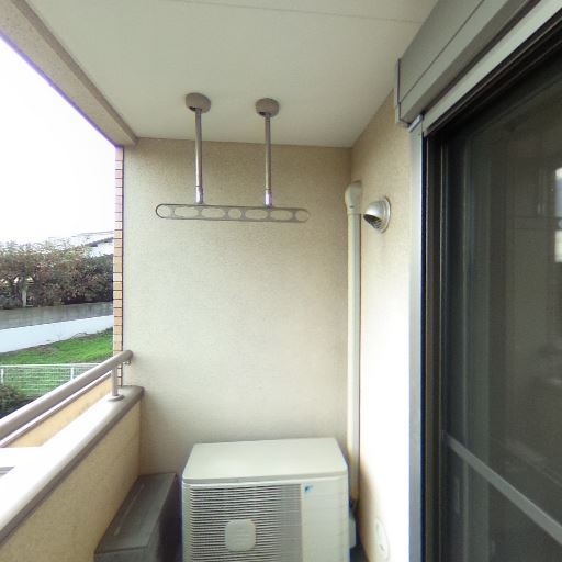 • バルコニー床は細長く、最低限の作業スペースはありそう(確度76%):室外機の手前に一定の奥行きがあり、洗濯物を干す・窓を開閉するなどの日常動作は行えそうな細長いバルコニー形状に見える。