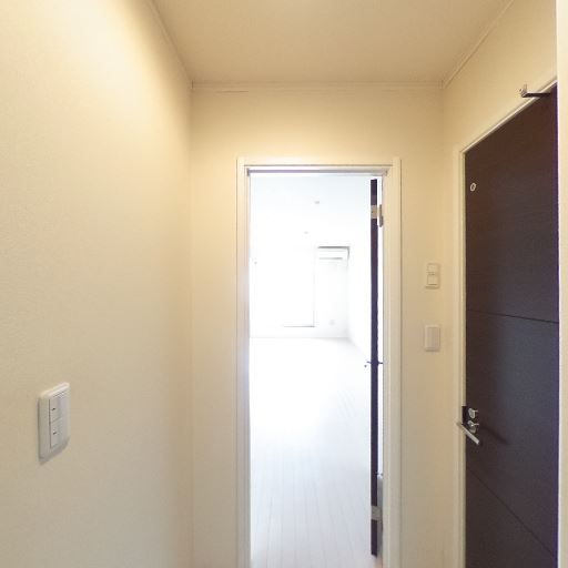 • 玄関から居室まで見通しが良い(確度88%):玄関扉から室内側のドア越しに明るい居室方向まで視線が抜けており、閉塞感の少ない動線に見える。