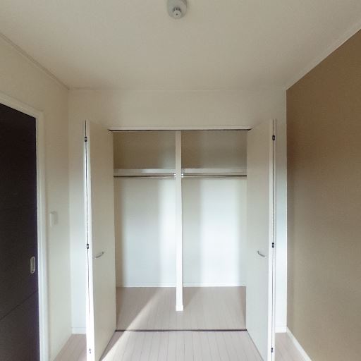 • 収納が大きめ(確度94%):壁一面に近い幅のクローゼットがあり、左右開きで内部にハンガーパイプも確認できる。衣類や日用品をまとめて収納しやすそう。