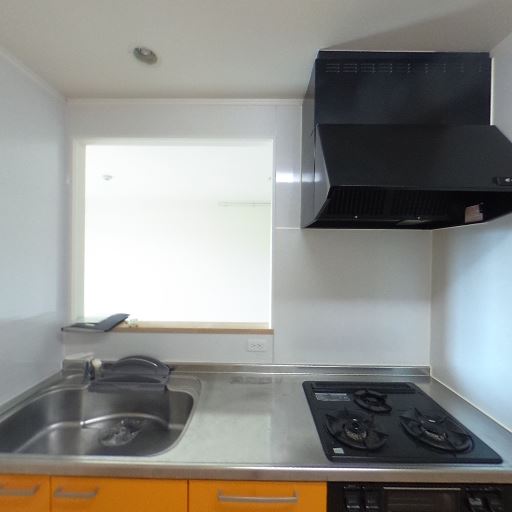 • コンパクトなキッチン設備(確度92%):シンク・2口ガスコンロ・レンジフードが一列にまとまっており、単身者向けとしては必要な設備が揃っている。