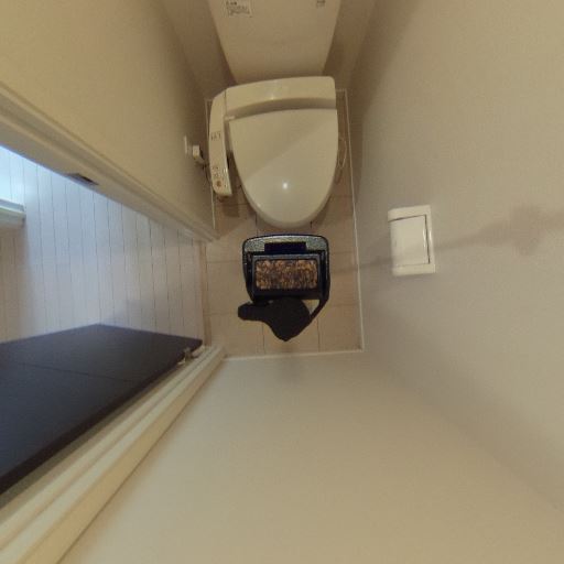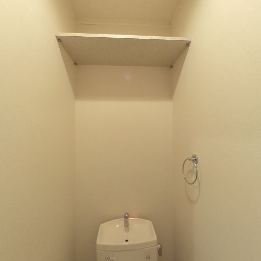 • トイレ上部の収納棚がある(確度95%):便器の上部に固定棚が設置されており、トイレットペーパーや掃除用品の置き場として使えそう。