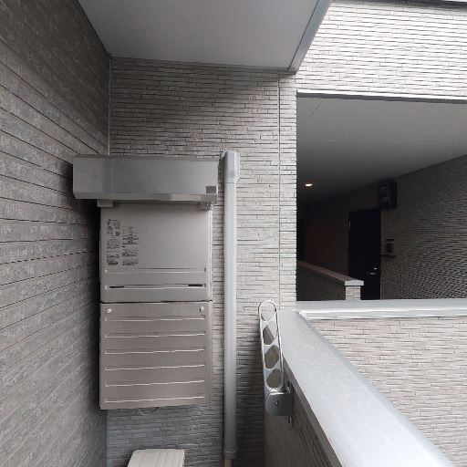 物干し設備あり(確度90%):バルコニー手すりに物干しアームが設置されている。