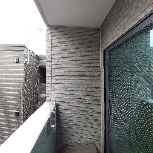 採光は良好だが眺望は限定的(確度70%):大きな窓から光は入るが、向かいの建物とバルコニー壁で視界は狭い。