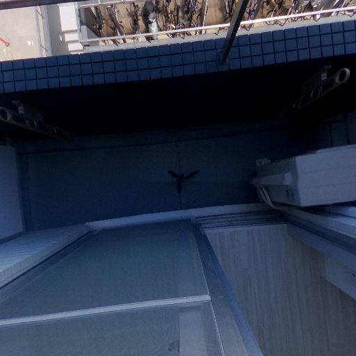 清潔感と内装(確度78%):壁面は白と濃紺のツートンで、目立つ汚れやカビは見当たらない。