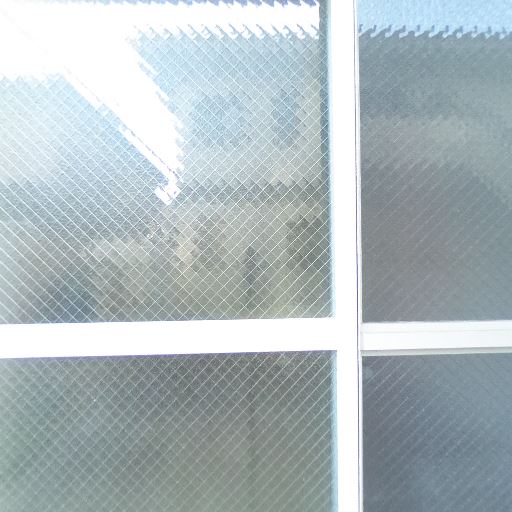 窓はワイヤー入りガラス(確度85%):窓ガラスに網目状のワイヤーが確認でき、防火・防犯面で一定の安心感。