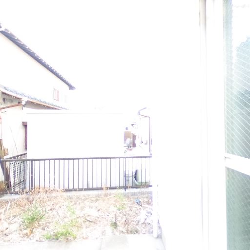 採光は十分だが直射で白飛び(確度70%):全体的に非常に明るく、直射日光が強く入っている様子。ただし眺望は建物で遮られる。