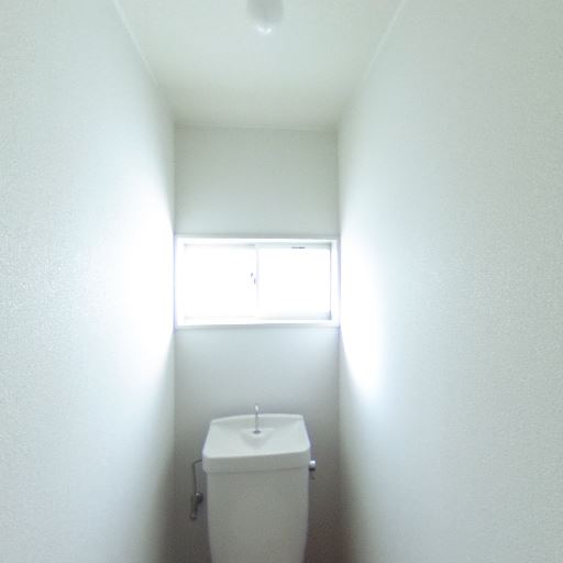 独立トイレで窓あり(確度90%):細長い個室トイレに横長の窓があり、自然光と換気が期待できる。