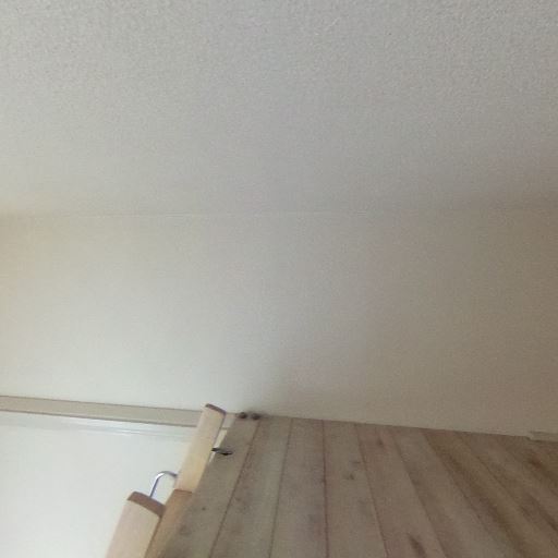 ロフト付きの間取り(確度90%):はしごと手すりがあり、上部に低天井のロフトスペースが見える。