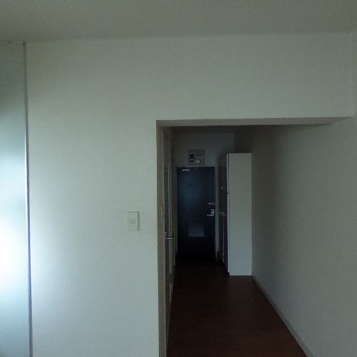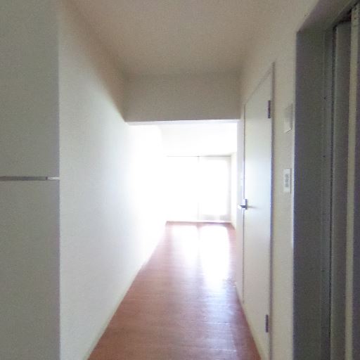 廊下の採光(確度73%):廊下奥に大きめの開口部から強い自然光が差し込んでいる。