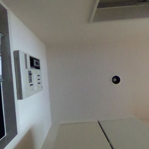 換気設備あり(確度78%):天井に換気口や点検口が見える。浴室上部には小型換気扇または照明も確認。
