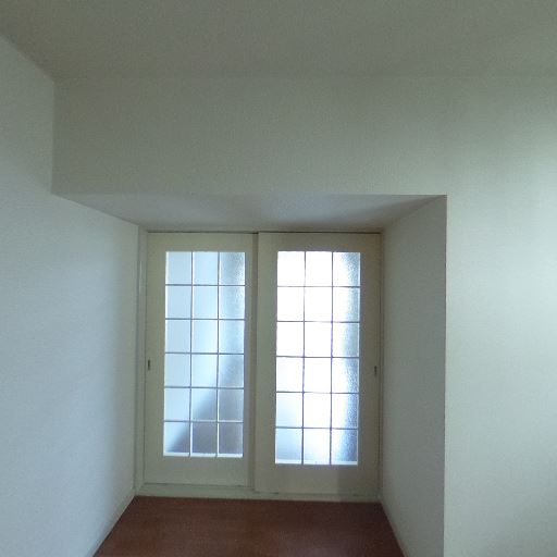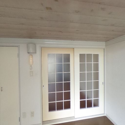 採光(確度74%):すりガラスの掃き出し窓があり、外光は入るが視界はぼかされているため直射は弱めに見える。