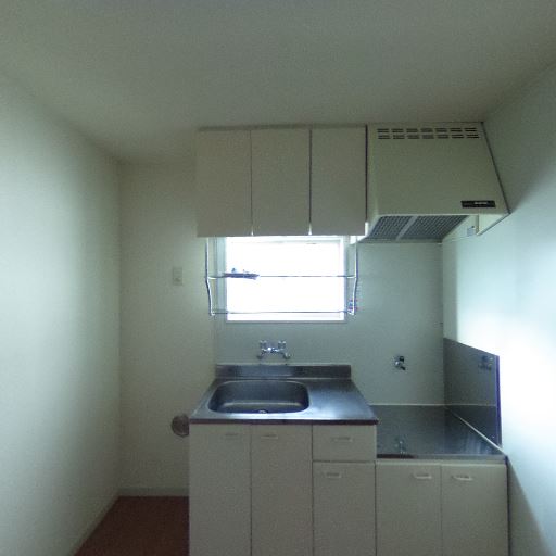 キッチン設備の状態(確度78%):単身向けのコンパクトな流し台・吊戸・レンジフードがあり、全体的に清潔感はあるが年季は感じる。