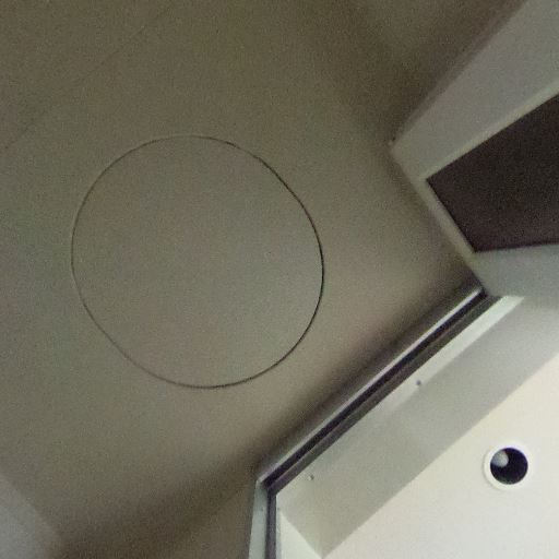 天井設備(確度70%):天井に点検口と丸型の感知器(火災報知器等)が見える。