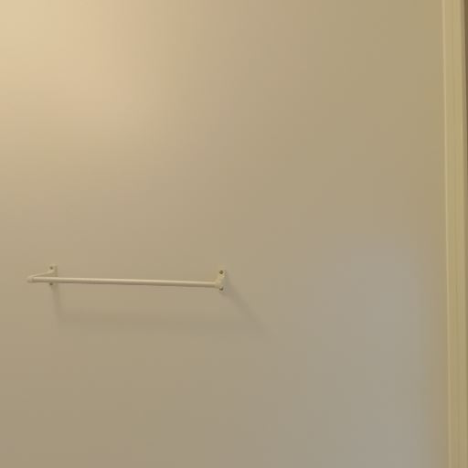 物干し・タオルバーあり(確度70%):壁面にタオル掛けが設置されている。