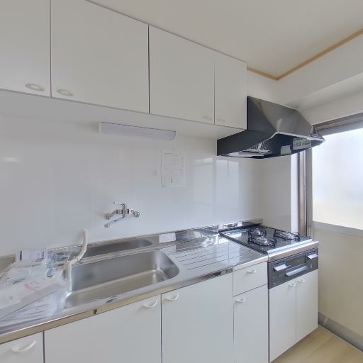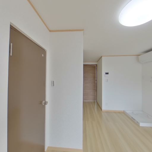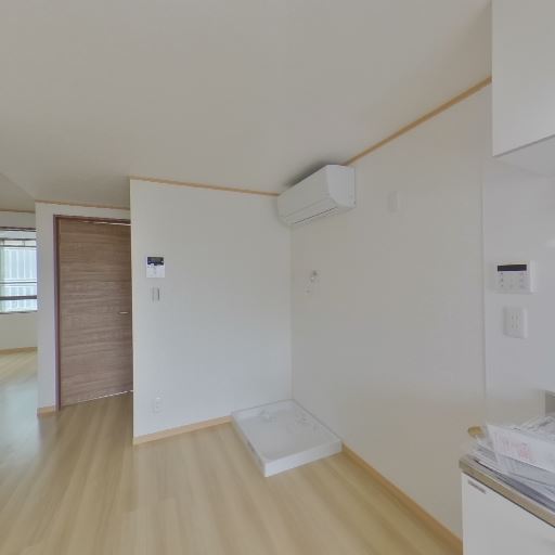 設備の新しさ・清潔感(確度76%):内装(床・壁)とキッチンが新しめで全体的に清潔。建具にも保護シールや説明紙が残っている。