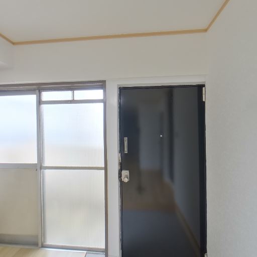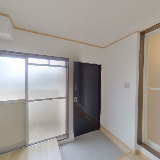 玄関まわりの印象(確度56%):玄関扉が室内に面しており、すぐ横に窓があるレイアウト。光は入るが、扉付近の動線がややタイトに見える。