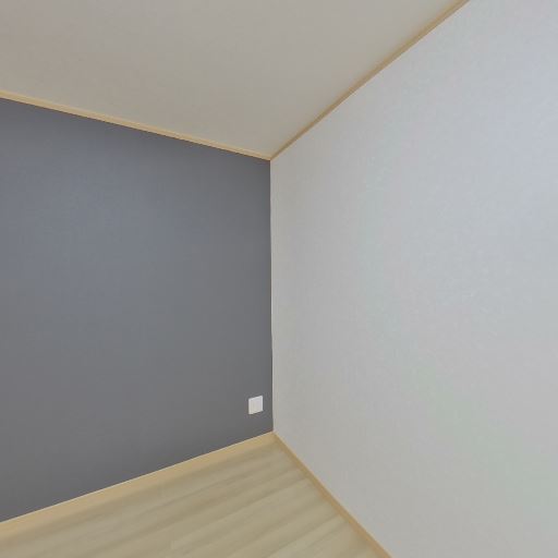 アクセントクロスのある内装(確度83%):一面がダークグレーのアクセントクロスで、他は白壁。空間が引き締まって見える。
