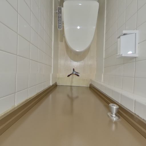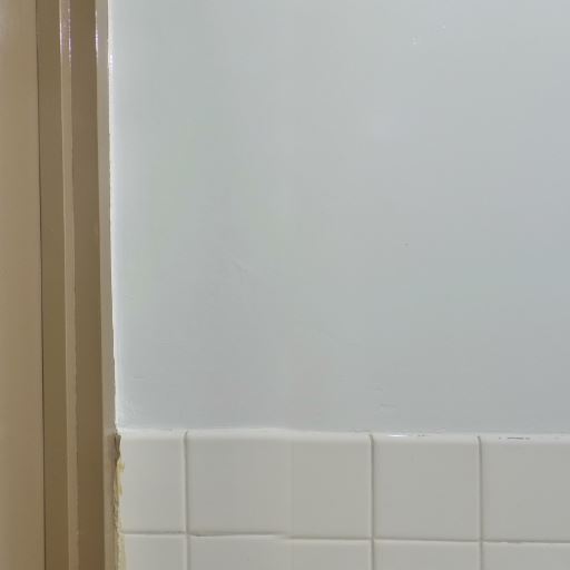 清掃状態(確度70%):全体として清潔感はあるが、タイル目地や壁際にやや黄ばみ・汚れの跡が見える箇所がある。