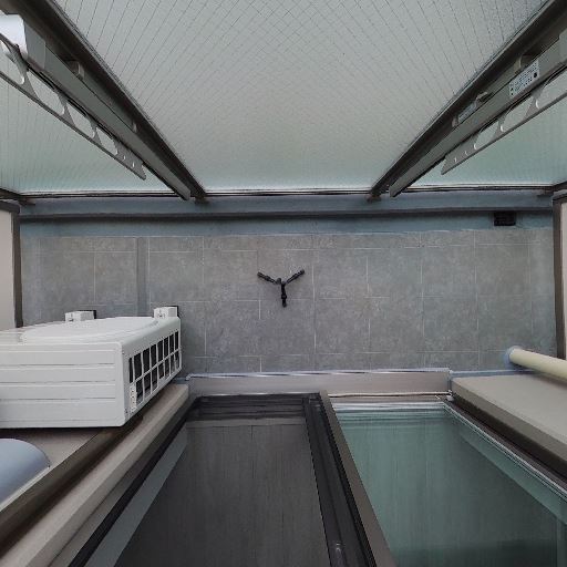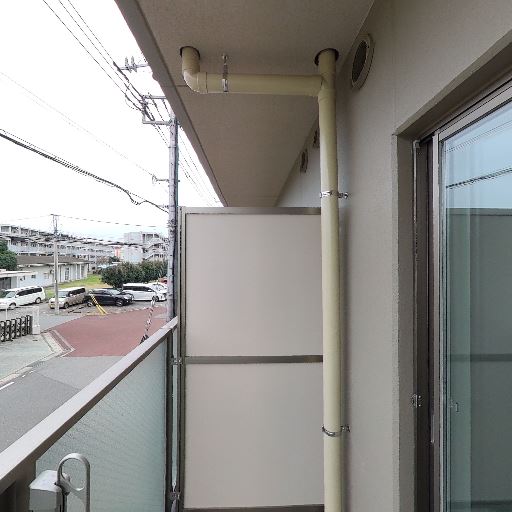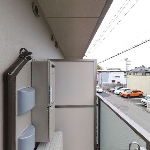 外干し用の金物・屋外コンセント等の設備(確度72%):物干し金物が天井側に2基、蛇口(スロップシンク用?)のような金具、コンセントボックスが確認できる。