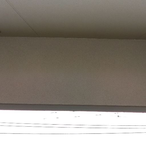 天井設備(確度78%):天井にダウンライト用の穴か器具、火災警報器が確認できる。