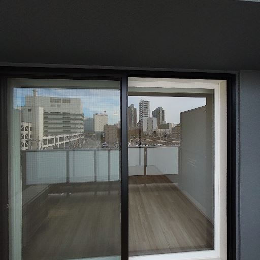 • 採光と眺望(確度86%):大きな掃き出し窓とバルコニーがあり、外光がしっかり入る。前面は高い建物まで抜けがあり視界は比較的開けている。